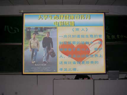 为了充分发挥我院大学生心理健康教育中心的工作职能,丰富广大同学的课外生活,进行心理知识的宣传和普及,配合我院“大学生心理健康教育宣传月”的顺利进行,促使同学自身主动关注个人身心健康。心理健康教育中心于5月14日下午在我院南校区新教学楼阶二教室开展了此次“心理电影展播”活动。