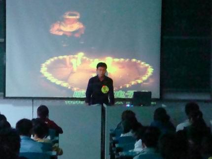 在选手们演讲的同时,大屏幕上放映着地震灾区一幕幕感人的画面,那幕幕场景使在场的每位同学都为之震惊。