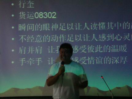 5月14日晚7:40,经管系学习部在阶二举行了以“弘扬民族精神,挺起民族脊梁”纪念5.12为主旨的演讲比赛。货代08302班行奎以其激情而生动的演讲获得了一等奖;会计08301谷晓楠、物流08304班戚德龙获得二等奖;会计08301�鹏真、会计08303陈帅龙、物业08201杨惠平荣获三等奖;会计08302胡亚博、连锁08301胡亚男、物流08301于换君、路政08301韩辉占荣获优秀奖。