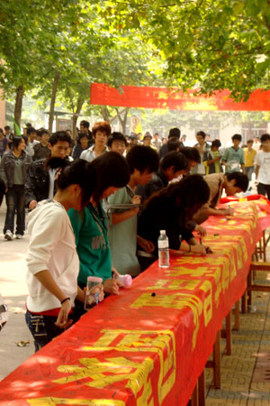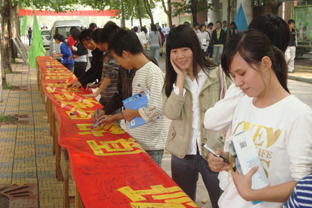 为庆祝祖国建国60周年,增强大学生爱国意识,9月24日―25日,我院道桥协会、青马协会经过精心准备,认真组织,成功举办了“庆祖国建国六十华诞”签名活动。