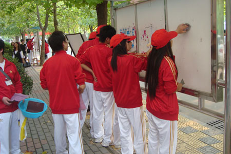 2009年09月27日下午,我院道桥工程系青志部全体成员,用自己特有的方式传递了对祖国60华诞的深深祝福。青年志愿者们利用课余时间,积极投入到美化校园的活动中来。他们在校园的每一个角落忙碌着,清除小广告、清洁报栏、打扫路面,在寝室楼前,教学楼前、图书馆前随处可见他们忙碌的身影。他们用自己的双手为美丽的校园增添了一份宁静和温馨。在这个特殊的日子,为祖国母亲的生日送上了自己最朴实的祝福,充分体现了新一代大学生乐于奉献,积极主动,热心公益的良好品质。