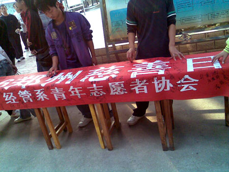 10月14日下午,河南交院经管系通讯社携手青年志愿者协会在教学楼前举行了以“携手慈善,共创和谐――10.16郑州慈善日”为主题的慈善签名活动。整个慈善仪式在协会成员的组织下如火如荼地进行着。