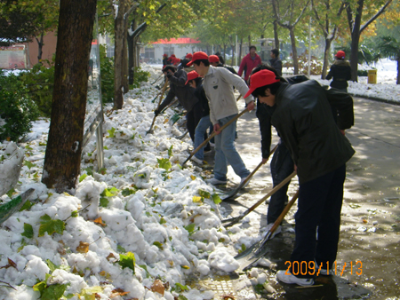 今冬的第一场大雪将整个校园变成了银白色的世界,但同时也给我院师生带来不便。为避免积雪路滑对我院师生造成意外伤害,11月13日中午,团学干部和青年志愿者们展开了清扫校园积雪,方便师生出行的志愿活动。