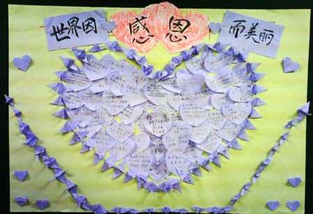 和谐的校园、健康的心灵、美丽的祝福,送给大家。本次活动由汽车工程系心理部策划,09级心理部成员和各班心理委员实施。此次活动以“你的祝福‘我’传递,温馨的祝福送大家”为宗旨,以班级为单位收集祝福,通过广播站广播和黑板报展示等方式传递祝福。