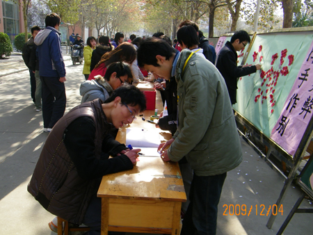 为进一步推动诚信教育活动,提高我院学生道德修养,在全院营造一个良好的考试氛围。12月4日中午,我院举办了一场以“我与诚信携手同行”为主题的签名活动。