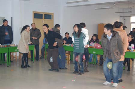 在联谊会当中,全体的教职员工积极参与各项娱乐节目,有当场献唱的,有做猜字游戏的,有表演相声的,有分组协同比赛的,且书记和主任现场为大家示范各种游戏的玩法,可谓欢声笑语此起彼伏,每个老师都释放了激情,增进了友谊,甩掉了工作一年的疲惫,点燃了新年工作的信心。大家纷纷表示,在新的一年里再接再厉,创佳绩,铸辉煌。