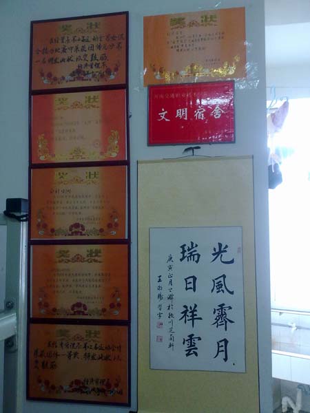每个宿舍有每个宿舍的特点,每个专业有每个专业的特点,有自己的独特之处,确立了主题,有利于宿舍之间的凝聚力,有利于发挥同学们的创造性。同学们集思广益,出现了有“翰林院”,“书香斋”、“篮球之家”、“星语星愿闺阁”、“我爱我家”、“爱国者”、“荣誉之家”等不同主题的宿舍,极大地调动了同学们创建星级宿舍的积极性。