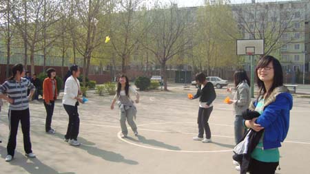 4月8号,造价09301班的学生在辅导员杨琴和班委的带领下,在操场进行了“快乐恰恰恰”的友谊比赛活动。此次的比赛项目包括:分组绑腿、踢毽子、投篮等,同学们积极而热情的参与到活动中,每组成员都团结一心,相互鼓励,默契配合,无论哪组出色的完成了限时任务,现场的同学们都会给予热情的加油鼓掌声。