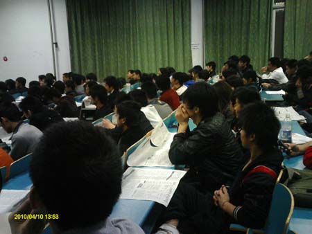 徐老师首先对四级考试作了具体的分析,并强调了四六级考试的重要性。接下来,徐老师用幽默的语言和具体的例子对英语学习作出了详细的讲解,并告诉同学们一些英语考试技巧,会场在徐老师慷慨激昂的演讲中达到高潮。