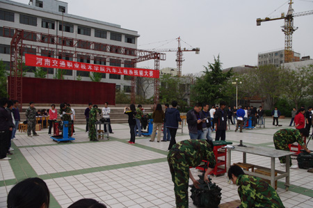 河南交通职业技术学院城市交通运输专业技能大赛于2010年4月22日下午在我院文化广场成功举办。技能竞赛的成功举办,标志着我院新专业----“城市交通运输专业”(大客车运用与维修),又有了一个崭新的开端。