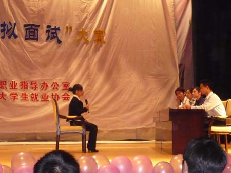 本次大赛分为自我介绍、面试问答、情景模拟三个环节,由职业指导教研室的老师担任评委。经过预赛胜出来自道桥工程系、汽车工程系、经济管理系、交通信息工程系的10选手参加了总决赛。选手们沉着冷静、自信大方、别具匠心的表现赢得了现场观众阵阵热烈的掌声。经过激烈角逐,来自汽车工程系整形09302班的崔坤鹏同学获得了第一名。