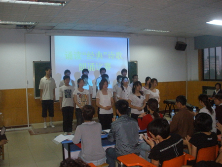 经过层层推荐选拔的12名优秀选手用情吟诵汪国真的《生活》、戴望舒的《雨巷》等经典诗文,耐人寻味、令人留恋忘返。经过激烈角逐,物业09201班的孟利强同学凭借标准的普通话、浑厚的嗓音、动情的吟诵获得本次大赛冠军。