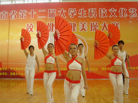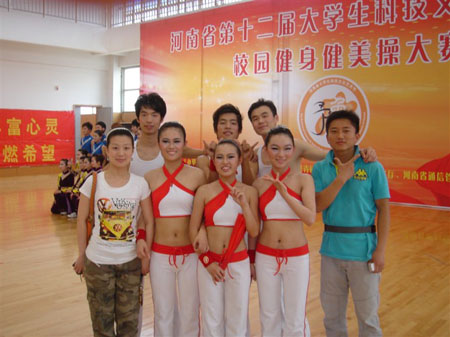 河南省第十二届大学生科技文化艺术节校园健身健美操大赛于5月22日在郑州大学体育学院举办,我院健美操队在王心心老师的带领下参加了本次比赛。