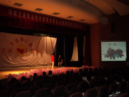 我院大学生心理健康教育宣传月系列活动五,暨第四届“我说我心事”话剧大赛,于5月26晚7:00在艺术中心上演。到场的嘉宾有院学工处张震副处长和马国亮老师以及各位评委。