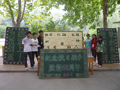 9月3日是中国抗日战争胜利日,为弘扬民族精神、培育爱国情怀,激发学生爱国热情,9月2日、3日中午在艺术中心门口,院团委举办了纪念抗日战争胜利65周年活动。活动期间,同学们将亲手制作的小白花献给抗战英雄,并在卡片上用最纯朴的语言表达了自己对抗战英雄的崇高敬仰。此次活动在同学当中引起了很大的反响,同学们纷纷表示一定要铭记历史、珍惜现在、发奋学习,为祖国的繁荣富强而努力奋斗。