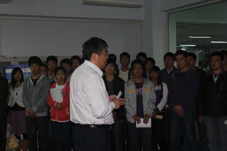 朱书记对63名09级入党积极分子做了重要讲话,宣布了在会的63名积极分子通过平时的党课培训和各种锻炼今天正式成为党员发展对象。
