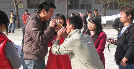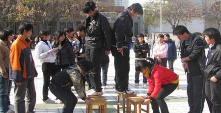 此次活动是往年“快乐向前冲”的变身和发展,共有五项内容,分别为:盲人走路、猜谜语、吸乒乓球、背靠背过凳子。比赛中,参赛队员展开角逐,队员们在赛场上“八仙过海,各显神通”,比赛场面妙趣横生,姿态百出。赛场气氛时而激烈紧张,时而呐喊助威声此起彼伏,整个赛场都洋溢着学生们的欢声笑语,使每位学生都暂且忘记了平日紧张的学习,在轻松、和谐的氛围中享受着运动的快乐。