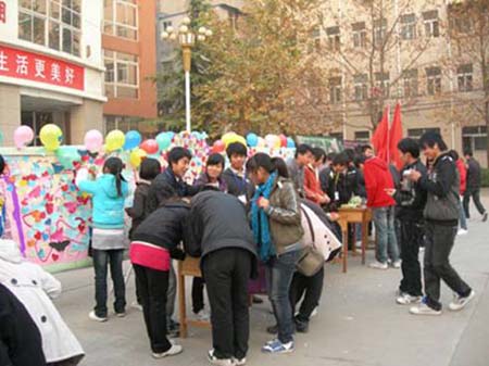 11月25日中午,道桥工程系、汽车工程系、经济管理系宣传部共同在图书馆门前举办了“卡片表恩情”活动。