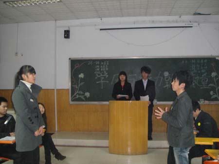 11月25日,人文社科系2010年新生辩论赛决赛在北校区实验楼509多媒体教师举办。文秘10301和建工10302班两支辩论队就“‘学历和能力孰轻孰重”的论题展开激烈交锋,最后,文秘10301班胜利夺冠。