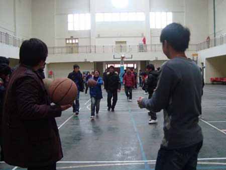 “晕头转向”是由三个男生和三个女生组成一组,女生原地转八圈后把篮球传给男生,男生再原地转十圈然后投篮,用时最短的为胜。“齐心协力”是由三个男生和两个女生组成一组,腿绑在两根杆上向前走,以30米的距离为限,用时最短的为胜。我系学生积极参与,不仅在比赛前抓紧练习,在比赛中更是团结合作、奋力前进。奔跑、呐喊,助威,同学们的热情早已将空气中的寒意融化。只见他们一个个笑容满面,在游戏过程中已经热得脱掉外套,取下围巾,可见这场活动的确取得了预想的效果!