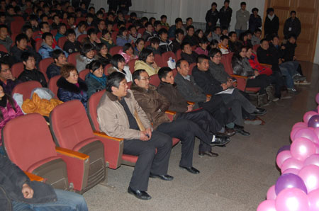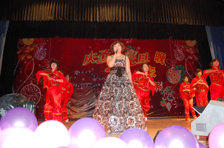 欢声的锣鼓敲起来,年味也越来越浓。在欢快又有节奏的舞蹈《开门红》的激情、动情的乐声中,晚会正式拉开了帷幕。同学们都还沉浸在刚才的欢快之中,乔坤同学的一首感情深厚的《不再犹豫》把同学们的思绪拉了回来,同时也把晚会带到了高潮。接下了同学们又欣赏了相声、小品等精彩节目。付歆娟老师优美而又动听的歌伴舞《好运来》、河南版小品《不是闹着玩的》等节目使晚会经历了一个又一个的高潮。