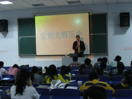 李鸿运老师主要从中国共产党的诞生、党章以及党的辉煌成就三个方面向大家讲授了党的光辉历程。从俄国十月革命到中国共产党的成立,从三大改造到改革开放,李老师生动形象的讲解,使我系入党积极分子对中国共产党的发展历程有了更加深刻、明确的认识,同时增强了他们的党性修养,坚定了他们的共产主义理想信念。