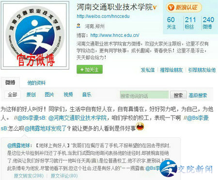 (仅学院微博上就有几百人评论、转发任师傅的善举)