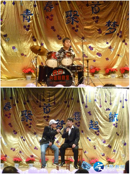 整场晚会以“青春聚首梦想起航”为主题,融合了歌曲、舞蹈、相声、小品、诗歌朗诵等多种元素。晚会节目丰富多彩,表演中既有同学单独才艺展示,又有师生同台精彩配合,深受广大同学欢迎,为全体新生演绎了大学精彩的开始,增强大家对大学生活的认同和憧憬。