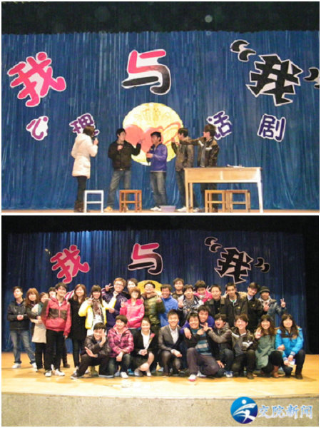 本话剧由我院心理协会学生自编自导自演,旨在培养同学们积极进取的人生态度和良好的心里素质,帮助同学们更好的处理生活学习中遇到的问题,剧情贴近学生生活,语言诙谐幽默,情节跌宕起伏,与欢笑中见真情。演员入目三分地演出一次次把全场气氛推向高潮。使同学们在观看演出的同时,了解了更多有关心理学方面的常识,寓教于乐深受同学们喜爱。