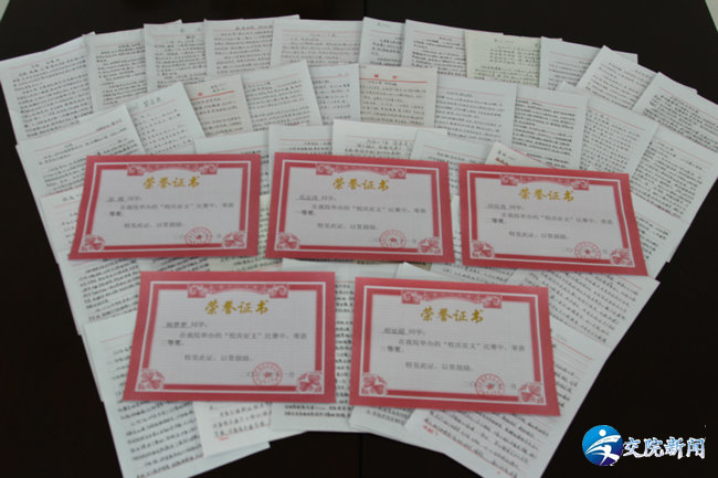 11月28日, “我与交院共成长”大型征文比赛活动落下帷幕。本次比赛共收到六个教学院系参赛作品300余篇,同学们用自己的华丽的语言、朴实的情感书写了自身对学院的热爱和未来的憧憬。