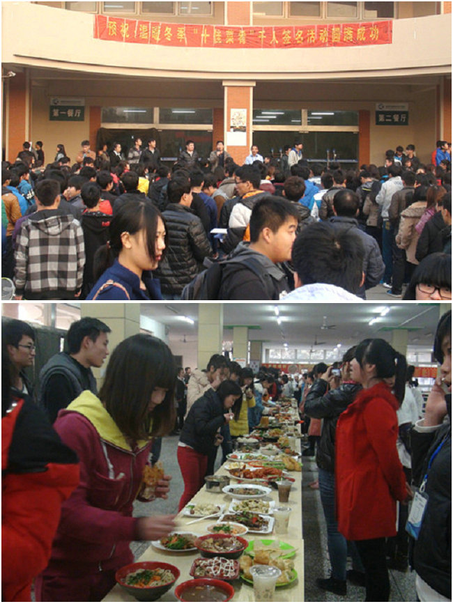 此次活动得到学院后勤处的大力支持,二百多道评选菜肴均由学生餐厅无偿提供。同学们凭评选票按顺序进入食堂,通过品尝对喜欢的菜品进行投票。