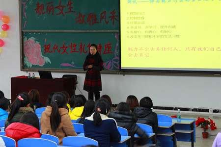 3月12日下午,由院团委主办,赵萌老师主讲的“靓丽女生 淑雅风采”现代女性礼仪知识讲座在新校区4A111教室顺利举办,前来聆听的女生近300名,现场气氛非常活跃。