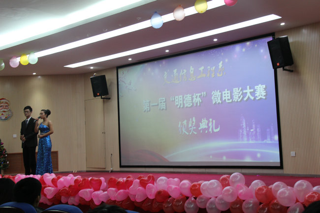 12月24日,交通信息工程系在学院3D影院举行首届“明德杯”微电影大赛颁奖典礼,系党总支书记魏功、院学工处副处长张震为获奖者颁发了奖项。