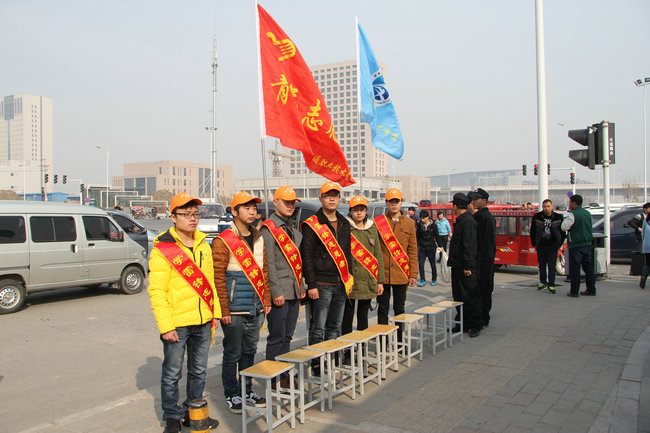3月7日、8日,正值郑州高校学生返校高峰。在地铁一号线体育中心站出口处,有一群佩戴学雷锋志愿者绶带的志愿者们跑前忙后,配合学院教工通勤车接学生返校,为我院返校学生提供提行李、送热水等服务。