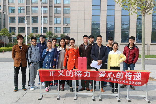 为进一步弘扬见义勇为精神,弘扬正气,给予见义勇为英雄更多关爱。4月8日下午,我系学生在学校广场自发组织向武耀宗同学募捐活动。