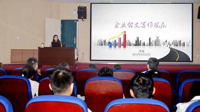 李菡老师结合多年文字写作工作经验,从增强公文写作自信心、常见公文种类、用途、格式、写作要点等方面结合具体实例进行了生动、细致的讲解。最后,着重讲解学校与企业公文格式要求,以及常用公文的注意事项,让培训人员受益匪浅。