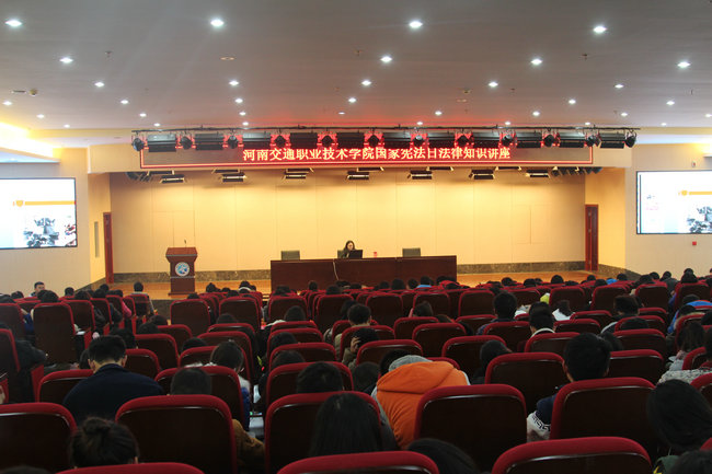 司老师以宪法日的由来及意义引出本次讲座的主题----“弘扬宪法精神,建设法治中国”,并就宪法是国家的根本大法、宪法是治国安邦的总章程、宪法是人民权利的保障书、宪法是其它法律的立法基础、宪法是实行依法治国的根本依据、宪法是一切组织和个人的根本行为准则等六个方面作了阐述,以生动的案例为学生进行了详细分析解读,希望广大师生不断增强遵纪守法意识,持续提高自己的认知水平,真正做到知法、懂法、守法、护法。