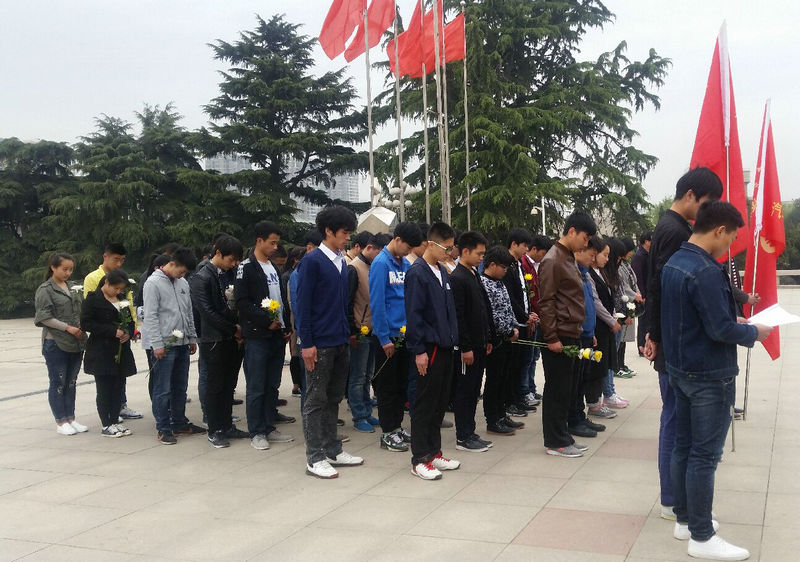 上午10点,学生志愿者们到达郑州市烈士陵园,大家整齐站立,庄严肃穆。志愿者们先在革命英雄纪念碑前默哀三分钟;接着志愿者代表向无数革命先烈敬献花圈,全体志愿者依次向革命先烈献花并在革命烈士纪念碑前念誓词,为烈士墓清除杂草。