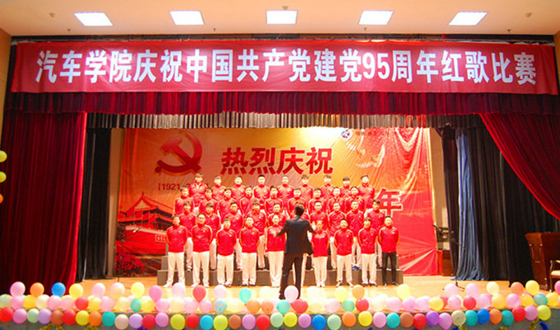 为迎接中国共产党成立95周年,弘扬爱党爱国精神,汽车学院于6月23日晚在航海校区艺术中心厅举办红歌大赛。汽车学院党总支书记刘向杰、团总支书记胡训华、各班辅导员和300余名学生代表出席了本次活动。 经过初赛,最终有10支代表队脱颖而出进入决赛。比赛在《没有共产党就没有新中国》优美的旋律中拉开了帷幕,《黄河大合唱》、《中国军魂》、《强军战歌》、《国家》、《歌唱祖国》、《精忠报国》等一首首经典的歌声回荡在我们耳边,把我们带到了那个激情燃烧的岁月。在同学们演唱每首红歌时,观众发出了阵阵掌声,不时出现台上台下同唱的场面。由48名预备党员组成的代表队演唱的《红星闪闪》把本次活动的气氛推到最高潮。 汽车学院举办这次活动不仅丰富了课外活动,也提高了同学们的爱党爱国情感,同时也使同学们更多的了解了革命历史,用红歌鼓舞和教育自己,使自己在未来的人生道路上,活出精彩,迸发激情,为祖国的伟大复兴作出自己的贡献。