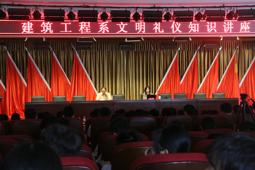 为进一步弘扬中华民族传统美德、普及文明礼仪知识,强化教职工及学生文明意识,9月14日下午,建筑工程系组织2016级新生、2015级学生干部以及全体教师职工在图文中心二楼报告厅举办了 “建筑工程系文明礼仪知识”讲座。