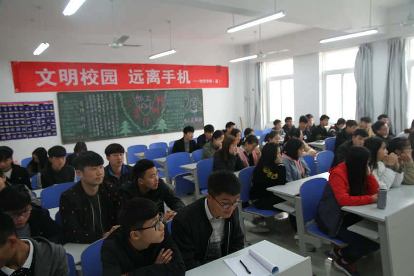 为贯彻落实学院第一次党代会关于提高教育教学质量,提升内涵建设的会议精神,物流学院党总支开展学生管理方面“三个文明”(文明学生,文明班级,文明宿舍)建设专项活动。此次倡议签名活动是落实其中的“文明班级”内容,倡议大家在学习场所关掉手机,承诺上课时间远离手机,尊重老师,把宁静还给课堂。