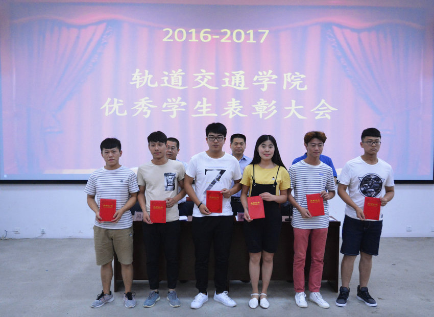6月14日下午,轨道交通学院院长宋全有、党总支副书记闫洪林、副院长齐伟以及优秀学生团体在物流报告厅进行优秀学生表彰大会。