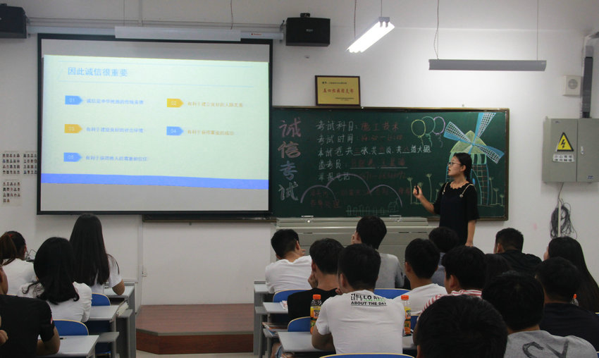 6月14日下午,以“诚信考试”为主题的团课评比活动顺利开展,新校区各院(系)团总支在初选的基础上推荐出最出色的团支部进行评比,最终,建筑工程系的工程造价16304团支部获得第一名。