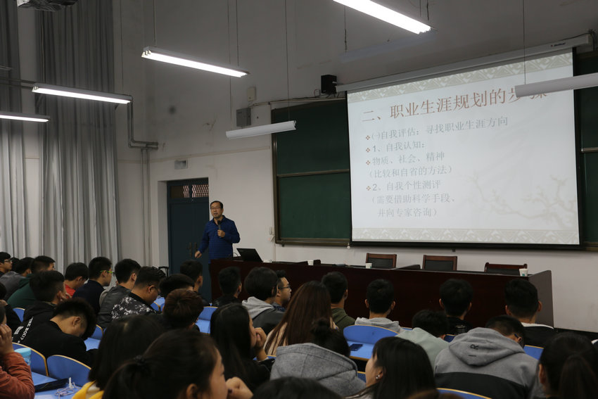 10月25日,商务旅游系主任陈振峰以“职业生涯规划 ”为题在4A212教室给2017级新生作了一场专题讲座。