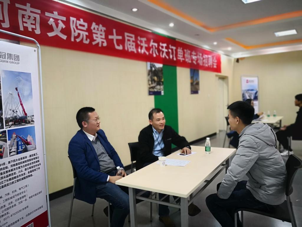 接下来河南通冠集团代表旗下的子公司—河南沃通、通冠重工、通冠高空平台租赁股份有限公司等进行了招聘,提供的岗位主要有工程机械售后服务、营销、配件支持、营销支持、高空平台作业服务。我院16级工程机械运用技术专业学生积极参加本次招聘会,共有近20名同学与单位达成了就业意向。