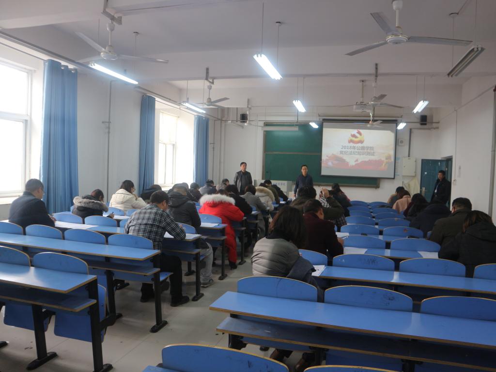 12月21日下午,公路学院按照《中共河南交通职业技术学院委员会关于印发2018年党风廉政教育月活动实施方案的通知》文件要求,在学院新校区组织开展了党纪法规测试,公路学院全体教工党员参加了此次测试。