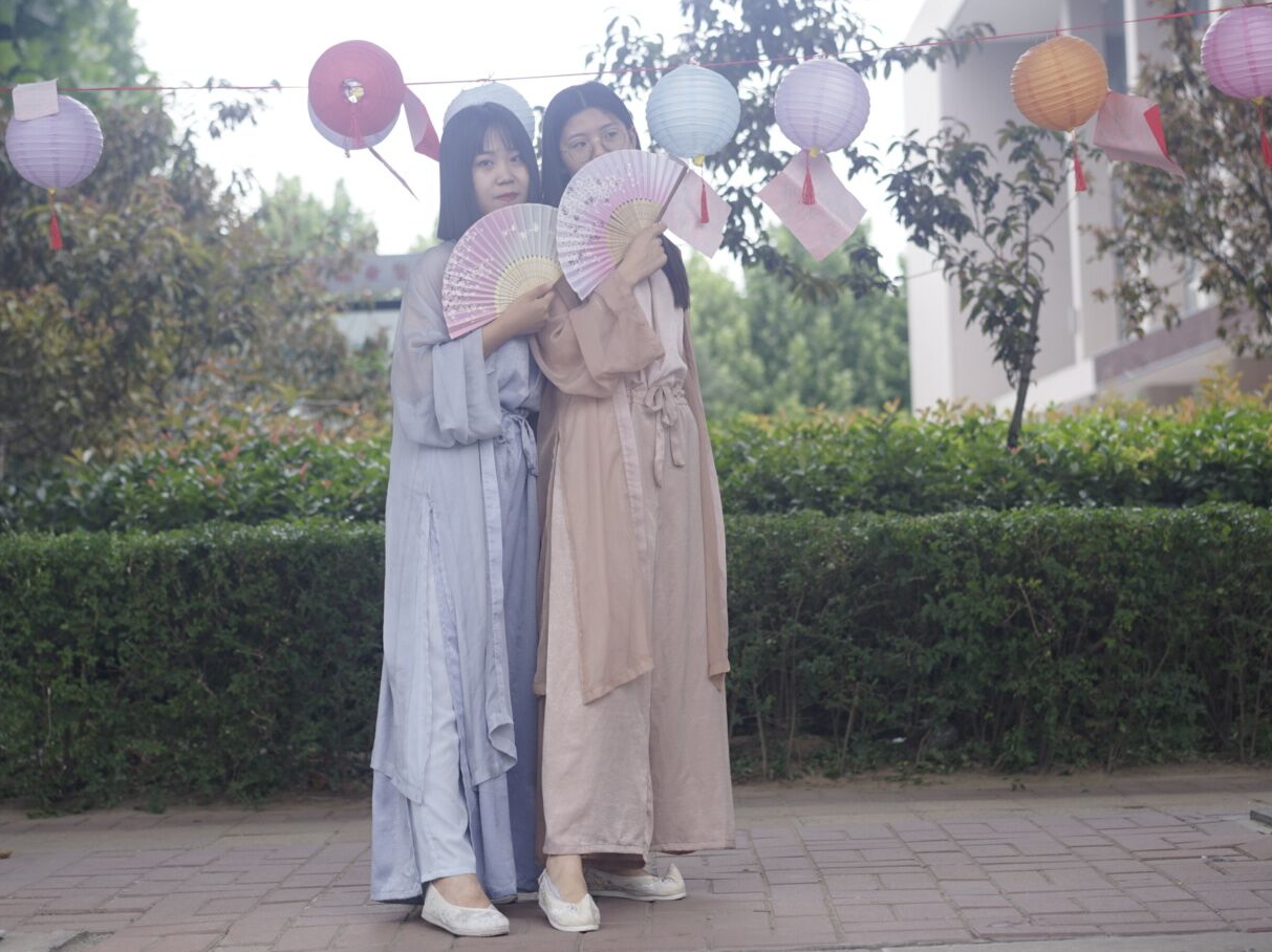 第一个环节是猜灯谜。有趣的谜题,让同学们觉得既新鲜又有趣,并且充满了文化和知识性,同学们都认真学习,尽情体会中华文化的精华。猜出谜底的同学会得到香囊、小娃娃等礼品,猜不出也可以获得参与小礼物。第二个环节是舞蹈表演《浪人琵琶》。五名汉服爱好者手执扇子,或两两结伴,款款而行,或衣袖翩翩,灵动独行。待走近观众时忽而一个旋转,长衣随风而舞;有的则双手相叠胸前,弯腰作揖。她们神态自若,风情万种,在阳光的映衬下,和着古色古香的乐曲,飘然若仙,仿佛汉朝古人穿越而来,也让现场观看的同学们沉浸于汉服的魅力之中。第三个环节是汉文化礼仪展示。通过礼仪展示环节,现场的观众们感受到了汉礼的庄严内敛之美和中华传统文化的博大内涵。
