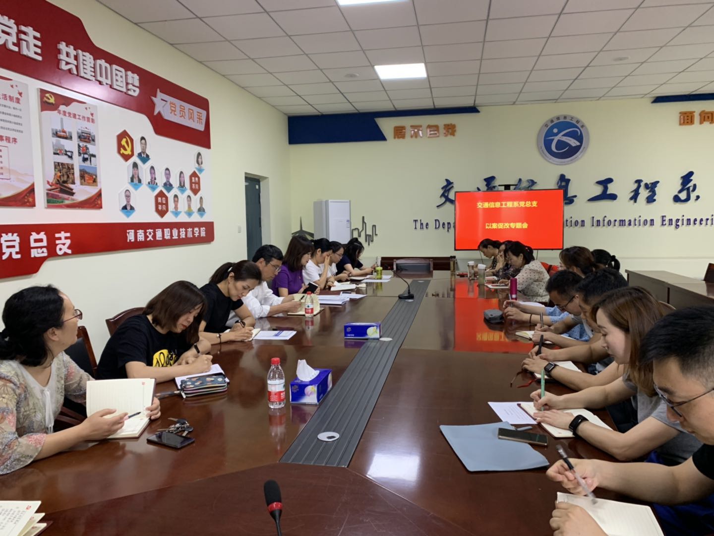 6月12日下午,交通信息工程系党总支在新校区召开议案促改专题会。学院工会主席张瑞春、纪检监察室刘烜宁及系党总支全体党员参加了本次专题会,活动由党总支书记李莹主持。