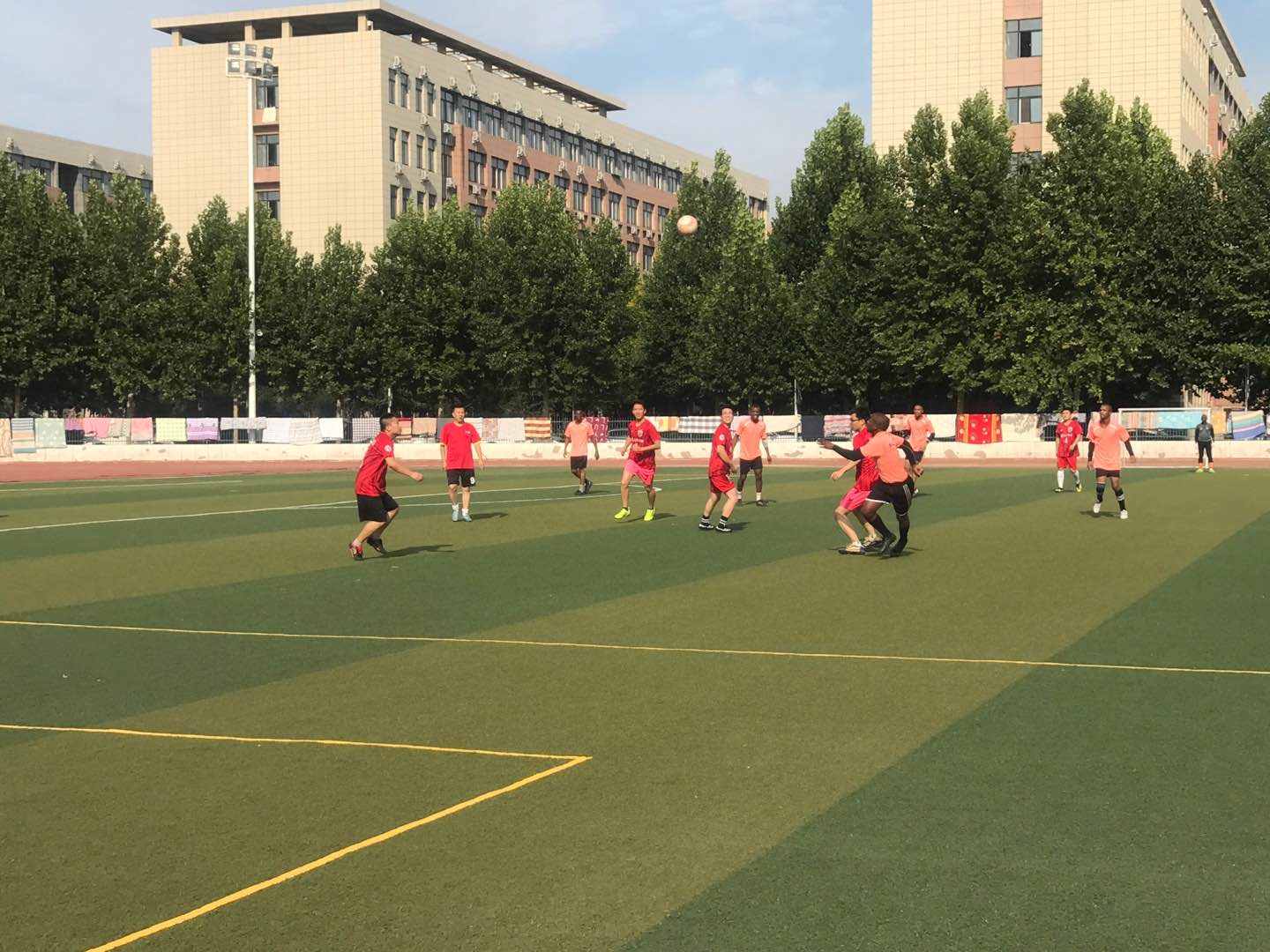 9月1日下午,上海汽车郑州分公司“荣豫杯”中非足球邀请赛在郑州铁路职业技术学院正式拉开帷幕。参赛的四支队伍分别是河南交通职业技术学院南非留学生、上海汽车郑州分公司职工以及郑州铁路职业技术学院的南非留学生以及郑州铁路职业技术学院师生。在当日进行的比赛中,由学院汽车专业9名南非留学生组成的河南交通职业技术学院代表队客场迎战郑州铁路职业技术学院代表队及上汽职工代表队。