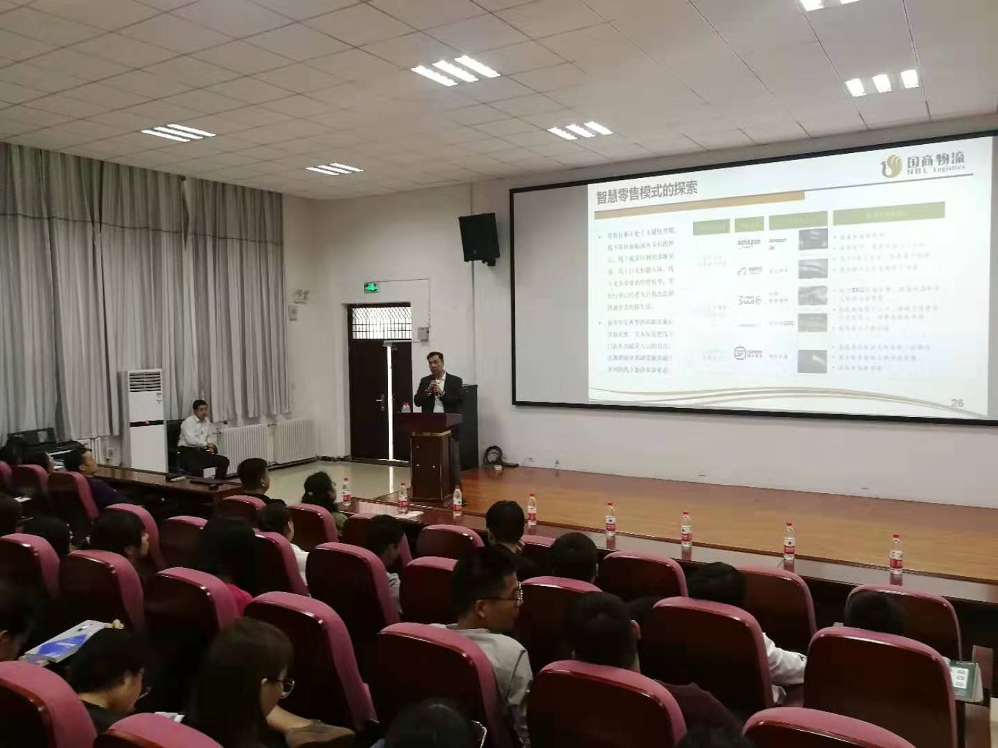 荀卫首先将自己的求学经历以及职业生涯给师生进行了分享,并对互联网时代下,现行物流行业的机遇及发展现状进行了深入分析,并从“物流智慧化”、“高技能物流人才发展规划”、“职教体系培训建设”等方面进行深度剖析,以自己的创办的北京国商物流为例,向师生介绍了国商物流公司的基本概况和运行模式,讲座结束后与在座物流学子进行了互动交流。